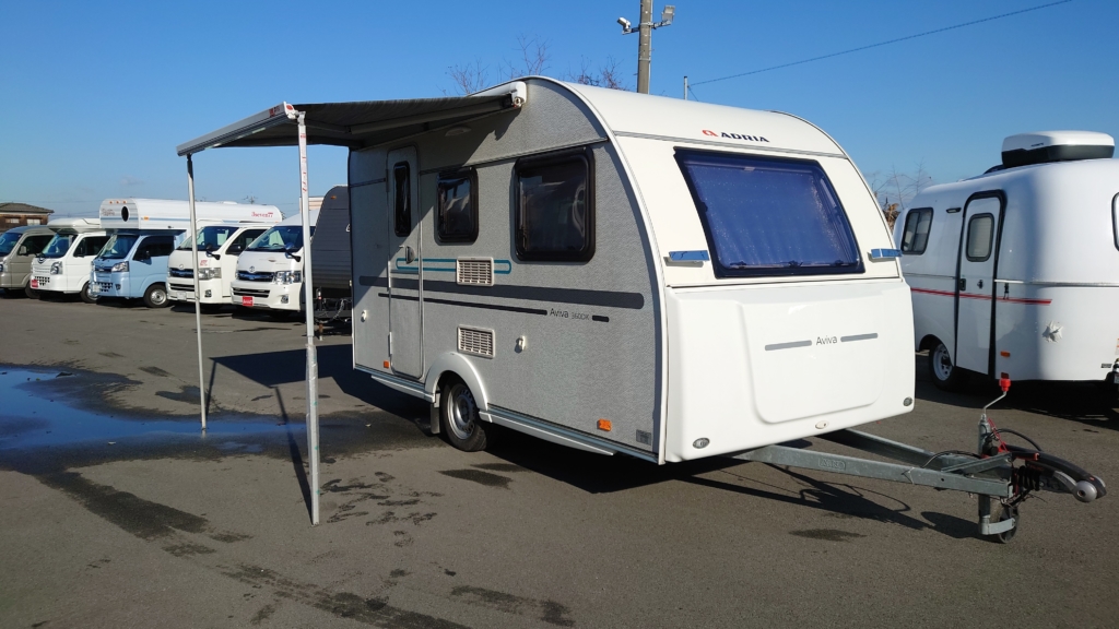 新車ワンオーナー H29年式 ADRIA AVIVA 360DK キャンピングトレーラー 牽引免許不要モデル トイレ シンク未使用 ペット乗車無し ガス式FFヒーター 3WAY冷蔵庫 簡易排水タンク未使用 ご成約有難うございました。