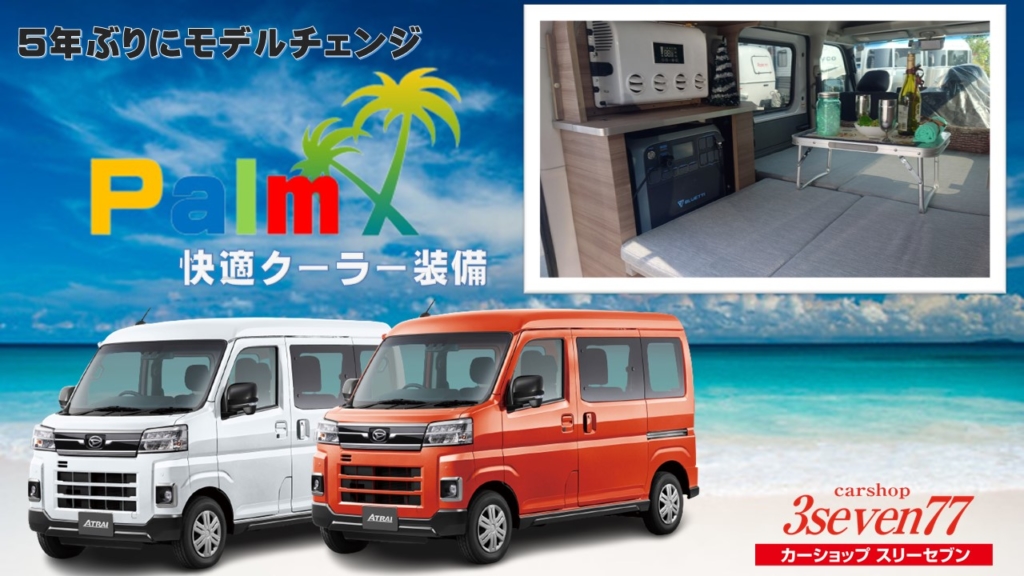 夏に強く、冬に優しく。進化する世代モデルPalm!キャンプも、車中泊も、ワーケーションも、災害への備えだって、さまざまなシーンで“使える”軽キャンパー!車中泊に必要な装備を標準とし、年間を通して快適に使える設備が満載。【カラーも豊富!!】トニ... -