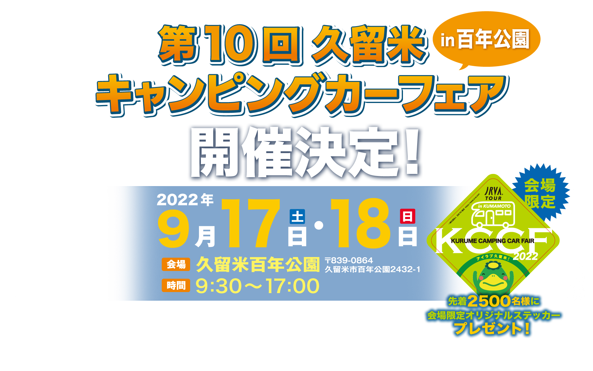 | イベント名 | 災害復興&九州応援イベント 第10回 久留米キャンピングカーフェア in 百年公園 |