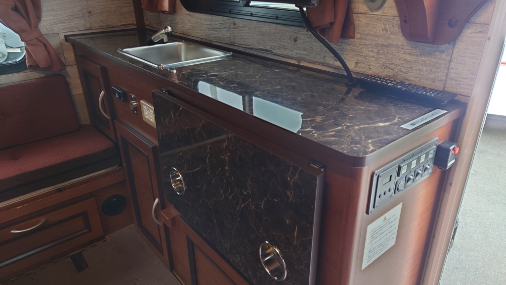 新車ワンオーナー(自社登録)・ナビ地デジ・前後ドライブレコーダー・FFヒーター・シンク・外部充電システム・走行充電システム・矩形波1500Wインバータ―・バンク延長(1.600㎜⇒1.800㎜)・サークルウィンドー・リアモニター・ナビ切替システム・前後足回り強化専用スタビライザー付・ETC・電源AC・DC・車検令和7年6月・リヤスピーカー・バックカメラ・禁煙車・ペット乗車無し・車検7年6月30日迄