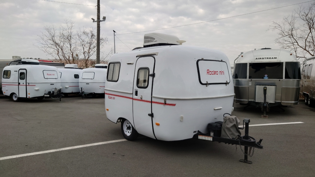 牽引免許不要モデル Rodeomini13ft Type1・新車ワンオーナー・TV付地デジ・矩形波1500Wインバーター・ガス式FFヒーター・温水ボイラー・二段ベット&ソファー・電磁ブレーキ付・ガス2本付・手押しドーリー付・ルーフクーラー・3WAY冷蔵庫・シンク&ギャレー・車検6年11月まで・新車ワンオーナー・開閉式網戸・LED灯・収納棚・マックスファンルーフベント