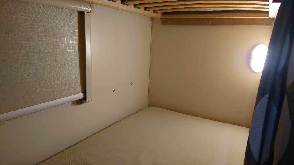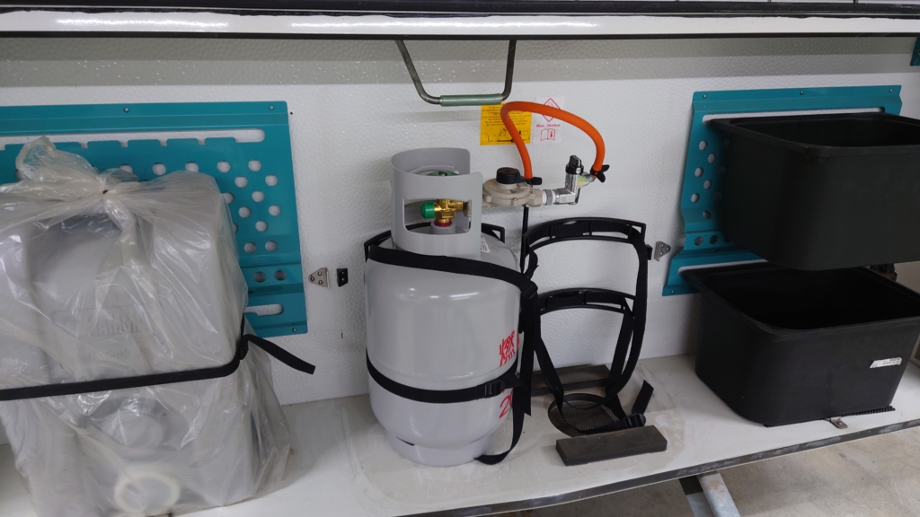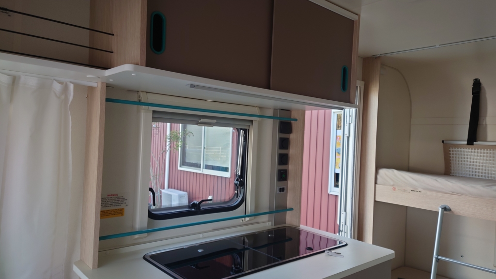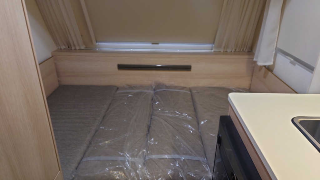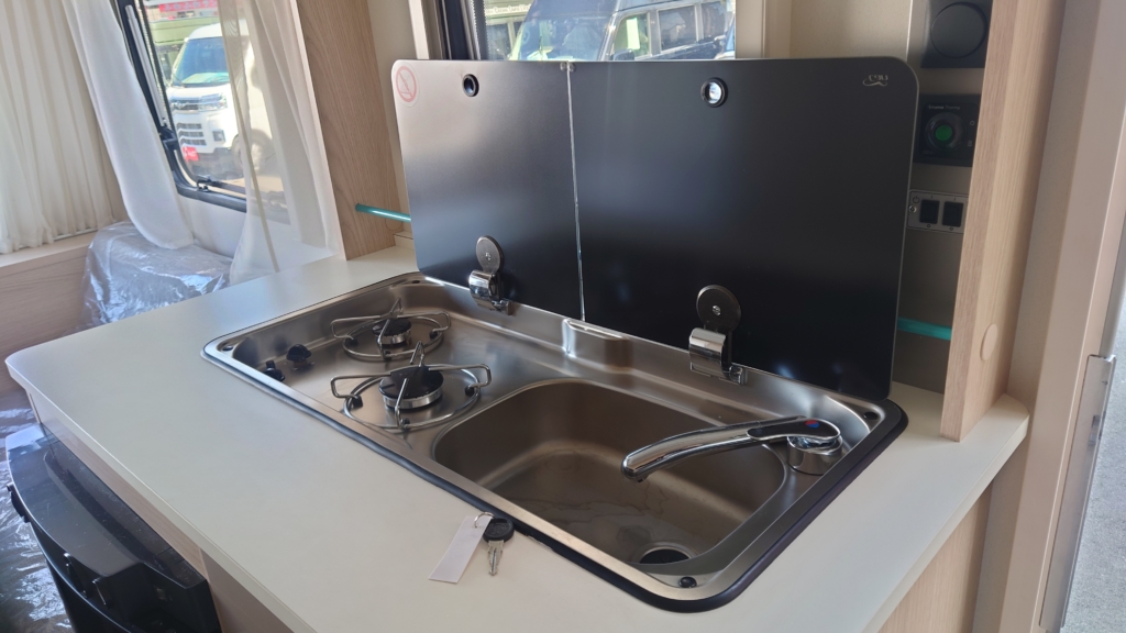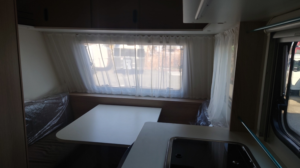 新車ワンオーナー・禁煙車・ペット乗車無し・ガス式FFヒーター・3WAY冷蔵庫・外部電源・サイドオーニング・2口バナーシンク・ベンチレータ―・各LED灯・ガスタンク8K×1本・スポットクーラー・給水タンク50L・稼働タイプ排水タンク23L(未使用)・電気式ウォーターヒーター・サブバッテリー付・マルチルームトイレシャワーホース付・カセット式トイレ(未使用)・二段ベットサイズ194×70・フロントテーブル&ベットサイズ194×126・前後メカニカルジャッキ付・スタビライザー・
