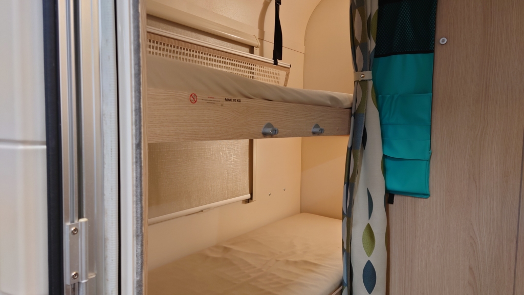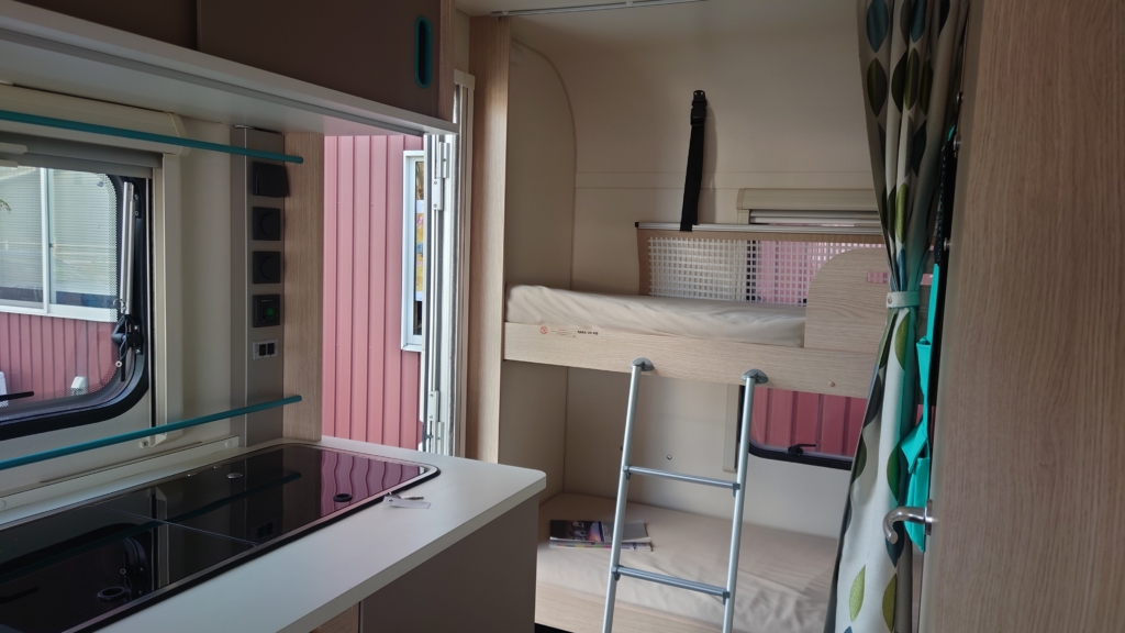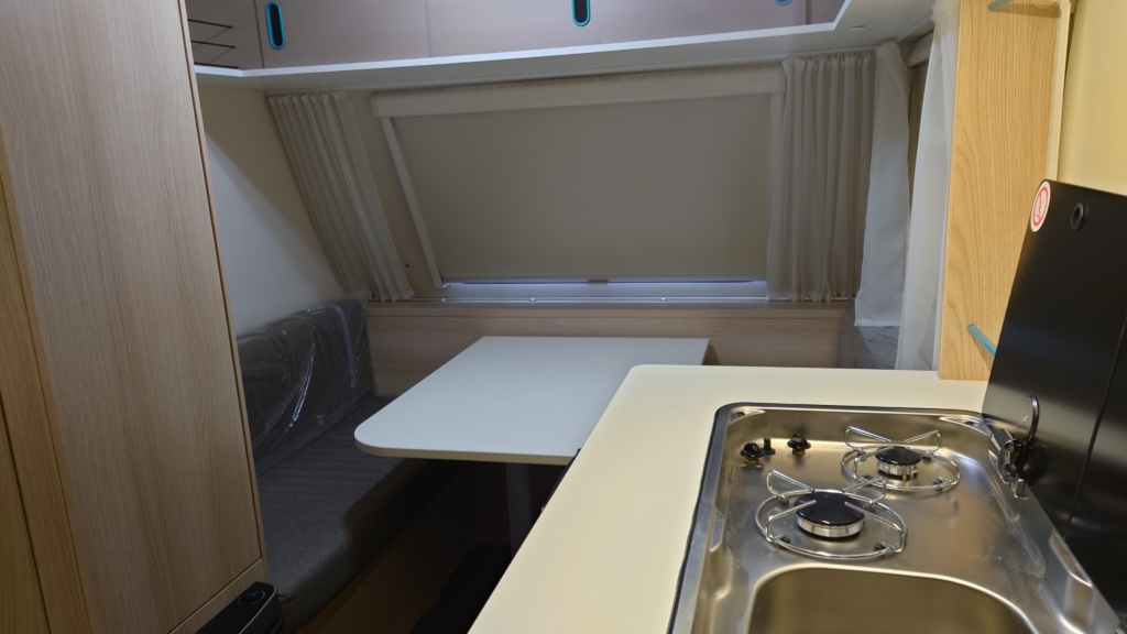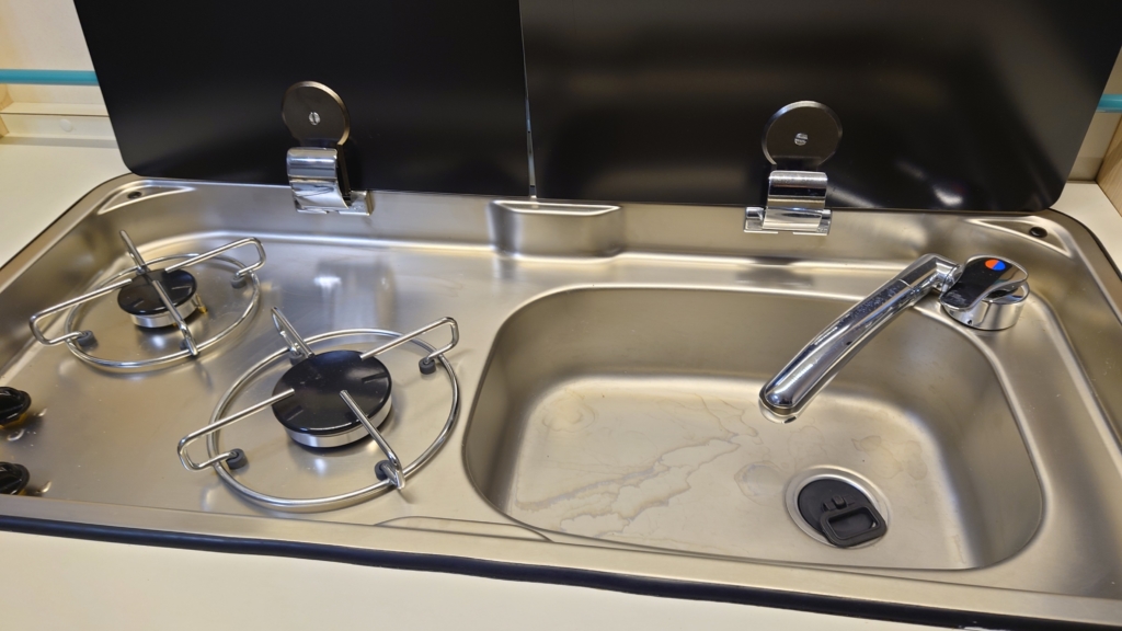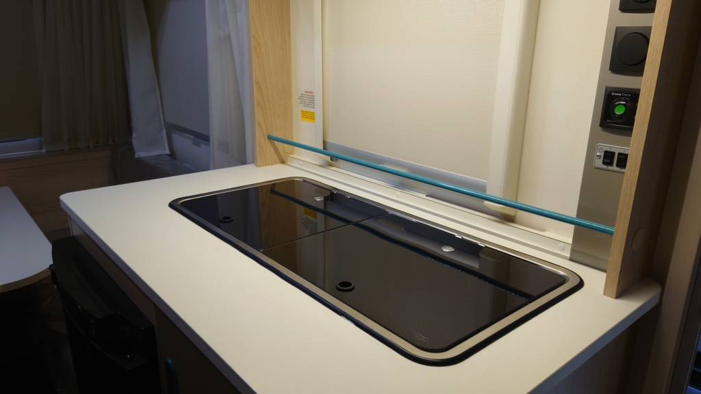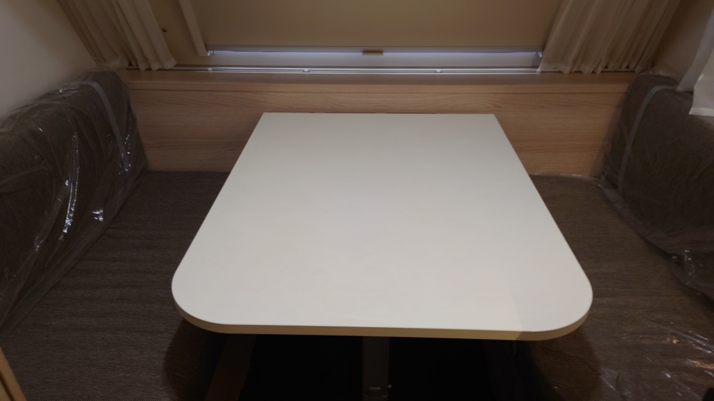 新車ワンオーナー・禁煙車・ペット乗車無し・ガス式FFヒーター・3WAY冷蔵庫・外部電源・サイドオーニング・2口バナーシンク・ベンチレータ―・各LED灯・ガスタンク8K×1本・スポットクーラー・給水タンク50L・稼働タイプ排水タンク23L(未使用)・電気式ウォーターヒーター・サブバッテリー付・マルチルームトイレシャワーホース付・カセット式トイレ(未使用)・二段ベットサイズ194×70・フロントテーブル&ベットサイズ194×126・前後メカニカルジャッキ付・スタビライザー・