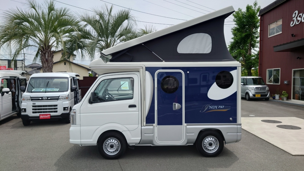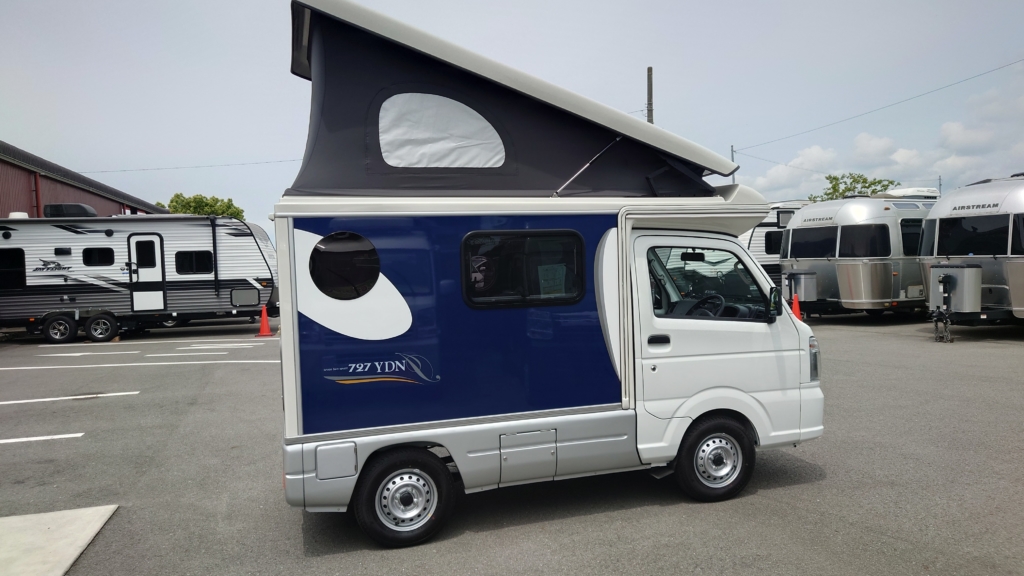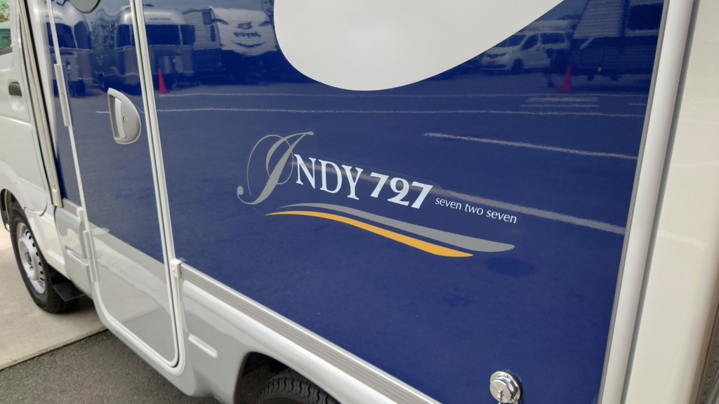 インディ727・バゲッジドア・バックカメラ機能・走行充電システム・パワーウィンドー・キーレス・ベルギーシート生地・FRPポップアップルーフ・シンクギャレー付シャワーヘッド