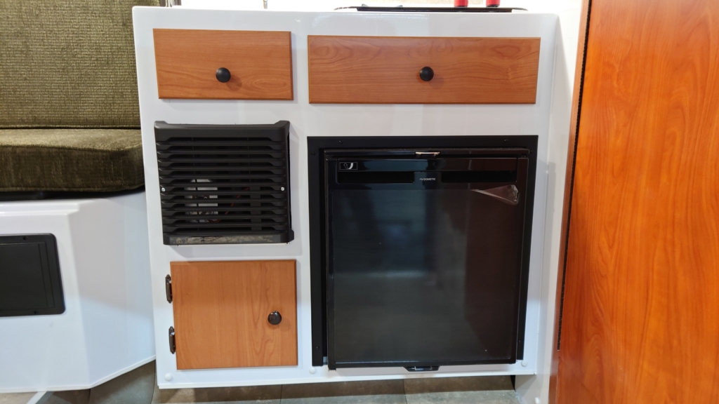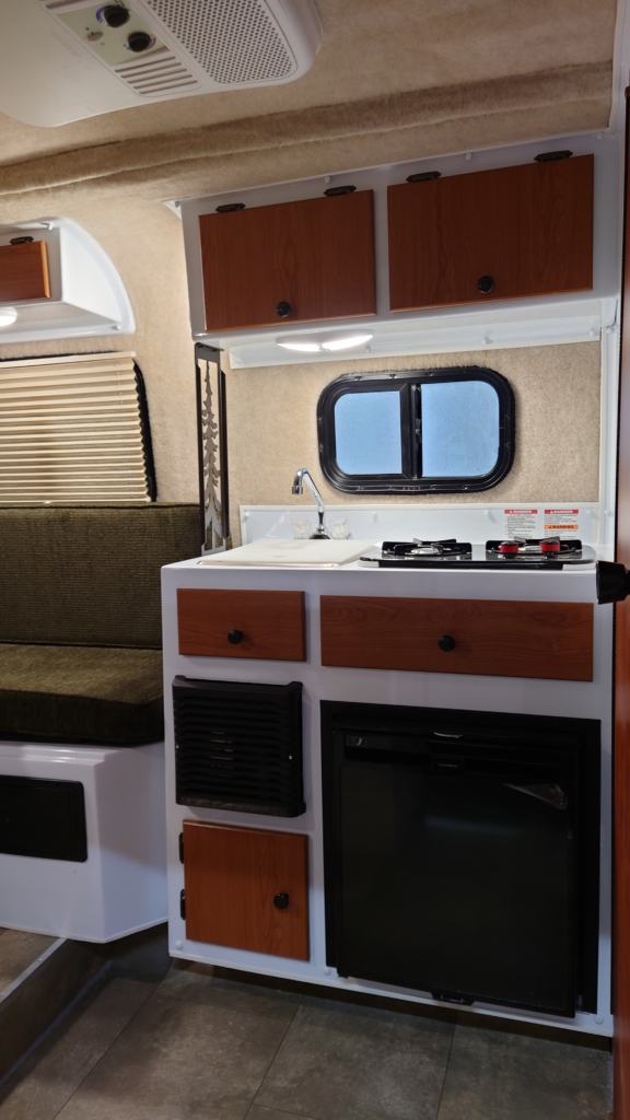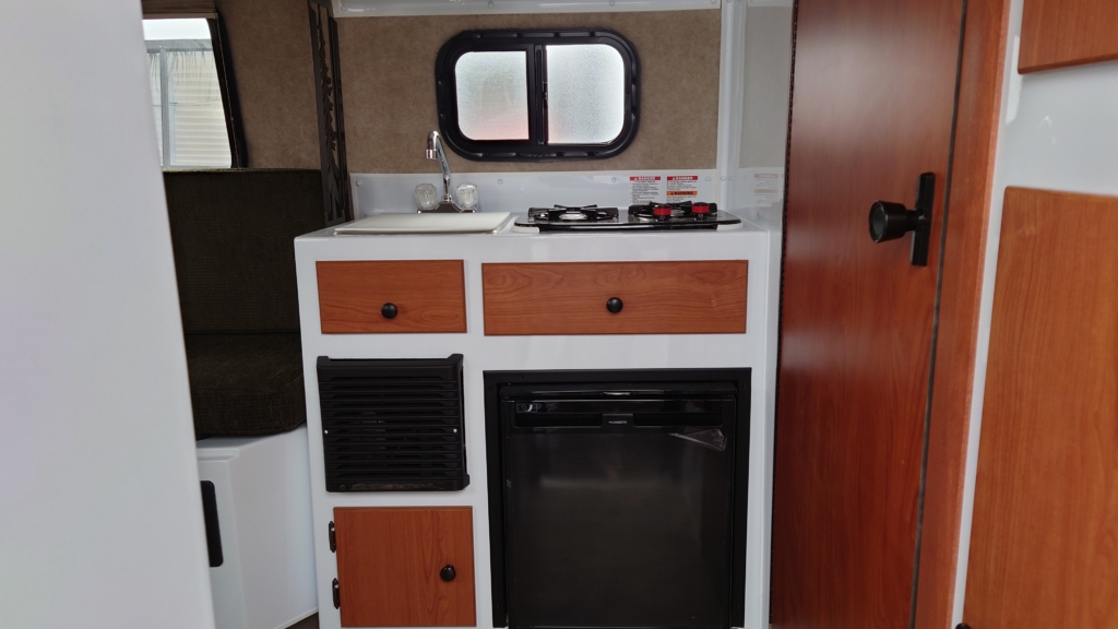 ルーフエアコン・ガス式FFヒーター・フレッシュウォーターヒーター・AC冷蔵庫・2口ガスバナー・ソファー&2段ベットモデル・給排水タンク・電磁ブレーキ・DC USBコンセント・2024モデル未登録未使用車・13ft牽引免許不要モデル・