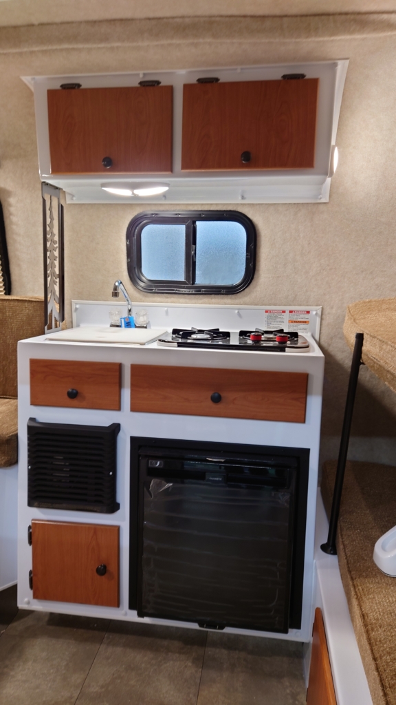 ルーフエアコン・ガス式FFヒーター・フレッシュウォーターヒーター・AC冷蔵庫・2口ガスバナー・ソファー&2段ベットモデル・給排水タンク・電磁ブレーキ・DC USBコンセント・2024モデル未登録未使用車・13ft牽引免許不要モデル・