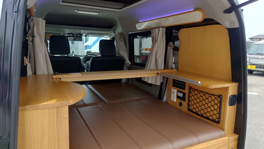 MOC2 タイプSキャンピングカー仕様・FRPポップアップルーフ・走行充電システム・外部充電機能・合皮専用マット・矩形波1500Wインバーター・LED灯・JOIN・LEDヘッドランプ・バックカメラ・前後ドライブレコーダー付・2.0ETC・3名+子供1名就寝・4人乗り・軽自動車4ナンバー・ナビ地デジ・専用全方位カーテン・ウィドーバクネット(網戸)・新車ワンオーナー(自社登録)・禁煙車・ペット乗車無し・キーレス・ABS・WSRS・デュアルカメラサポート・