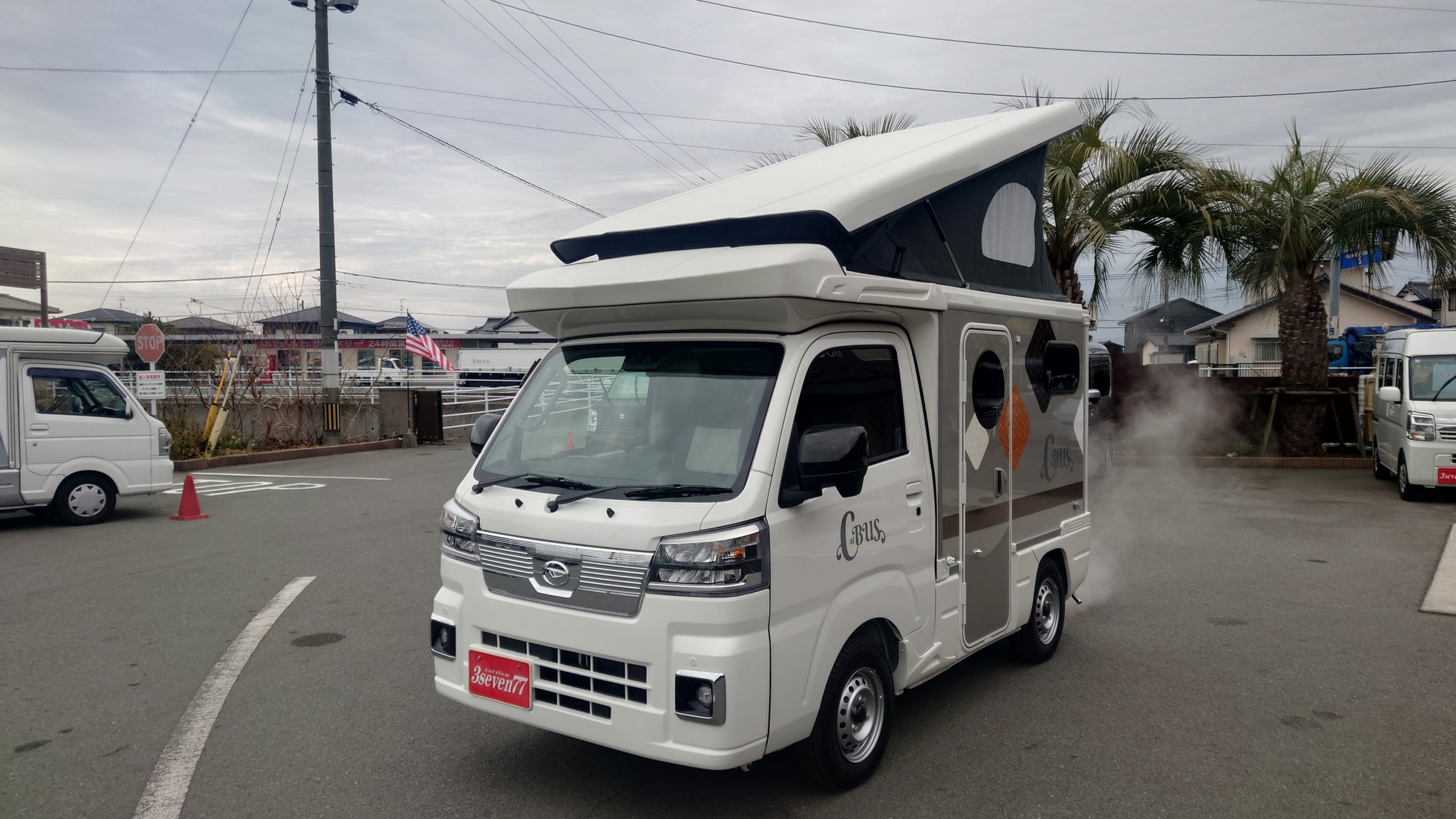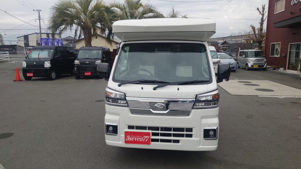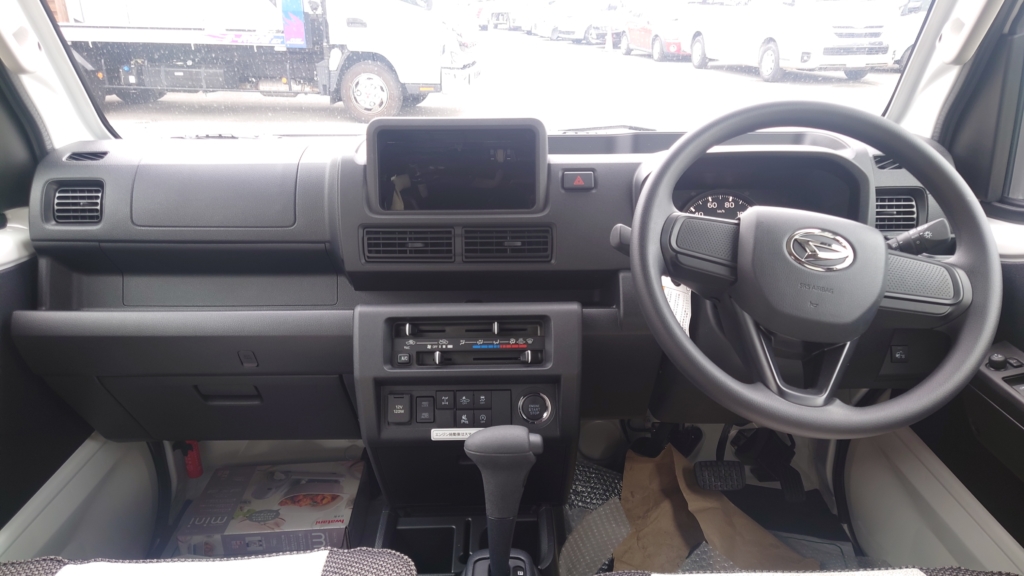 3,380mm 1,480mm 1,960mm KF 658cc 34kw(46ps)/5700rpmキーフリーシステム(イモビライザー機能付・リクエストスイッチ付(D席+P席、エクストラのみ)エクステリア灯火器安全装備インテリア快適装備キーシリンダー(D席+P席)集中ドアロック(D席+P席)サンバイザー(D席+P席)ラジオレス+2スピーカー電子制御式4WD(CVT車、オート/ロック)機械式4WD(5MT車)スーパークリーンエアフィルター(エクストラ)クリーンエアフィルター(スタンダード)ヒーター(フロント)電動式パワーステアリングワイヤレスドアロック■ベース車標準装備主要諸元シート表皮/フルファブリック撥水加工(エクストラ)プリントレザー(スタンダード)パワーウィンドウ(運転席挟み込み防止機構付、エクストラのみ)145/80R12 4本C-bus (シーバス)ダイハツ・ハイゼット トラック通称名ベース車両車体寸法エンジン・性能ドライブトレイン60N・m(6.1kgf・m)/4000rpm